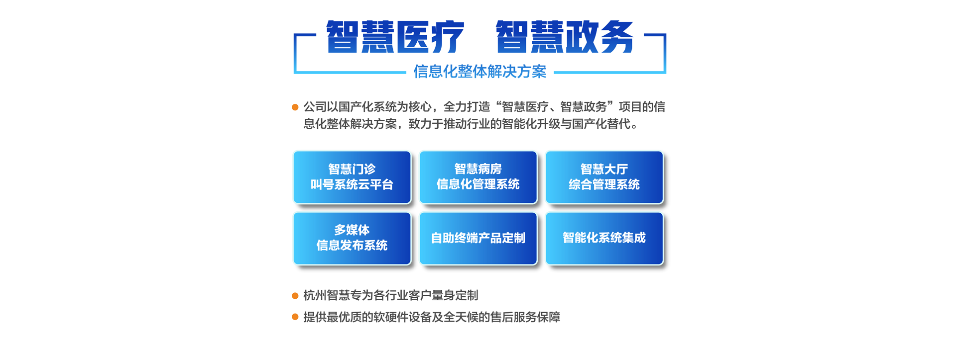 杭州智慧科技有限公司初創(chuàng)于2003年,總部位于重要的電子商務中心中國杭州公司主營業(yè)務有:智慧分診叫號系統(tǒng)、智慧病房醫(yī)護對講系統(tǒng)、智慧大廳綜合管理系統(tǒng)、智慧政務管理系統(tǒng)、智慧多媒體信息發(fā)布系統(tǒng)、導診系統(tǒng)及各自助終端產品定制。專為各行業(yè)客戶量身定制。公司已有20余年行業(yè)經驗沉淀積累,擁有優(yōu)秀的產品外觀設計師和各類中高級專業(yè)技術工程師,確保所研發(fā)的產品具有行業(yè)領先的外觀及可靠的技術性能。并擁有權威部門頒發(fā)的各類知識產權及專利證書,30多項資質證書、800多個合作伙伴、2000多個項目成功案例經驗。 智慧產品已遍及全國各醫(yī)療、政務、金融、通訊、公安、工商、稅務等行業(yè),形成以“立足杭州、輻射長三角、拓展全國”的戰(zhàn)略發(fā)展格局,產品經過歷年不斷創(chuàng)新,形成專業(yè)化、平臺化,致力于成為智慧產品的領軍企業(yè)。 公司建立了完善的技術培訓及售后服務中心,并設24小時熱線咨詢電話解答用戶反饋的問題。同時應客戶要求定期派技術人員到 全國各地進行技術指導輔助用戶正確使用智慧產品并能獨立安裝、調試、日常維護等工作。提供最優(yōu)質的設備及全天候的售后服務保障,智慧永恒不變的服務宗旨——致力于客戶的滿意與成功!...